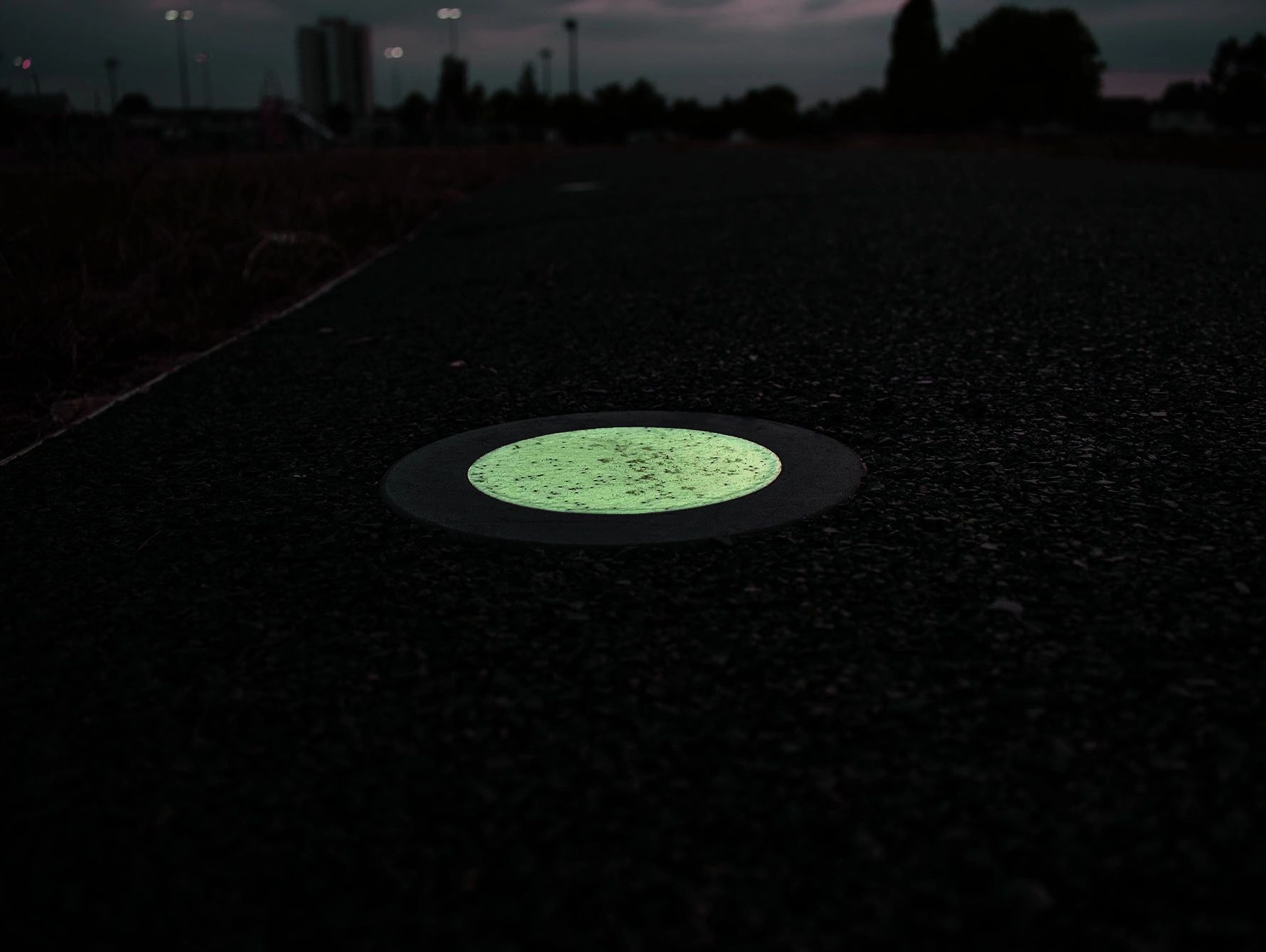 Glo-bound markers can be installed into any new resin bound surface, such as pathways, cycle tracks, driveways or platforms to illuminate edging and hazards and provide wayfinding solutions. No cabling or batteries are required, as the discs are charged in daylight glowing throughout the night.